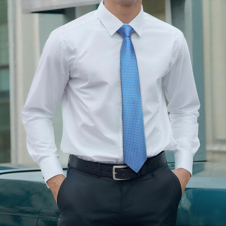Blue Plaid Necktie Mens Silk Formal Tie Pocket Square Cufflinks Set
