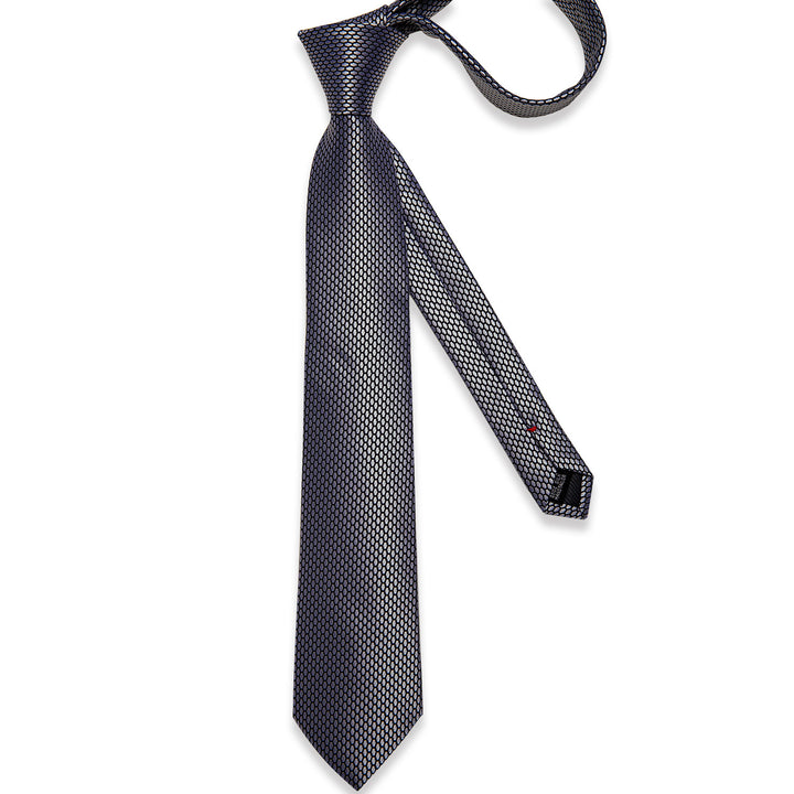 Grey Geometric Plaid Tie Pocket Square Cufflinks Set