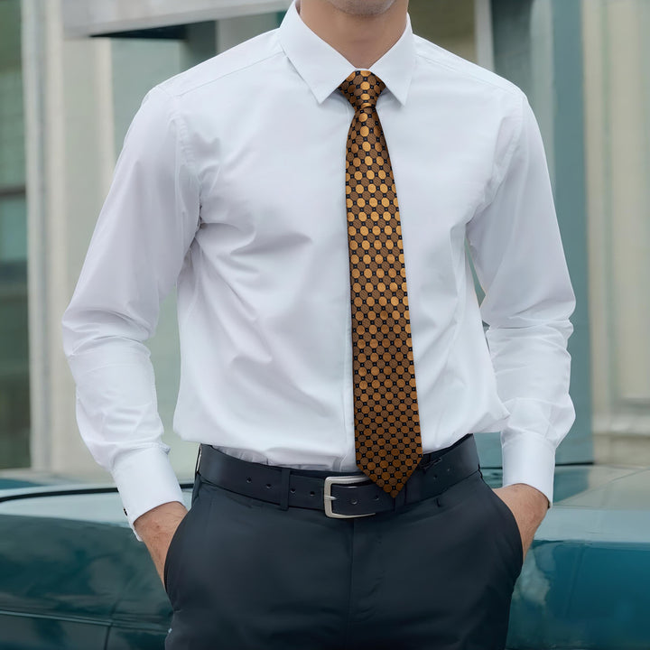 Mens Silk Necktie Gold Plaid Wedding Tie Handkerchief Cufflinks Set